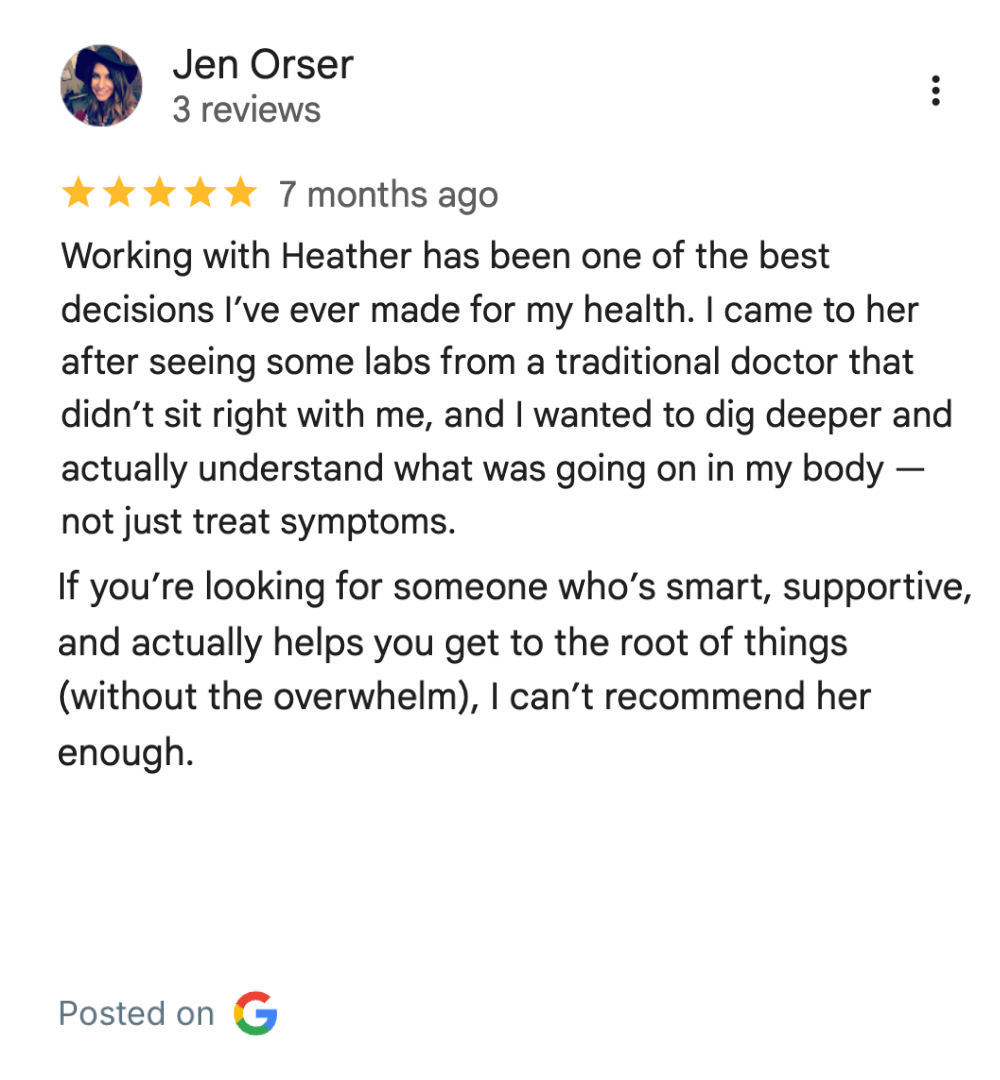 With experience in both hospital and clinical settings, Heather takes a functional, personalized approach to care. She uses advanced lab testing and targeted regenerative protocols to identify underlying imbalances and help patients restore their health, energy, and long-term wellness.